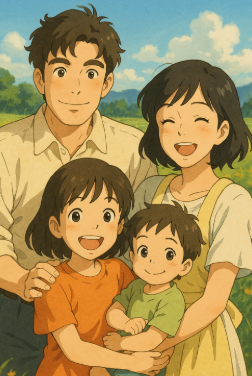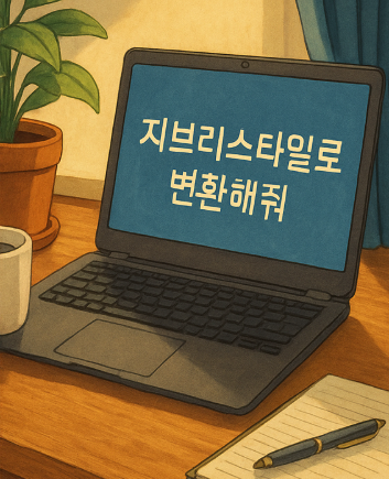 - “지브리스타일로 변환해줘. 배경은 잔디밭, 의상은 흰색 원피스에 노란 앞치마.”